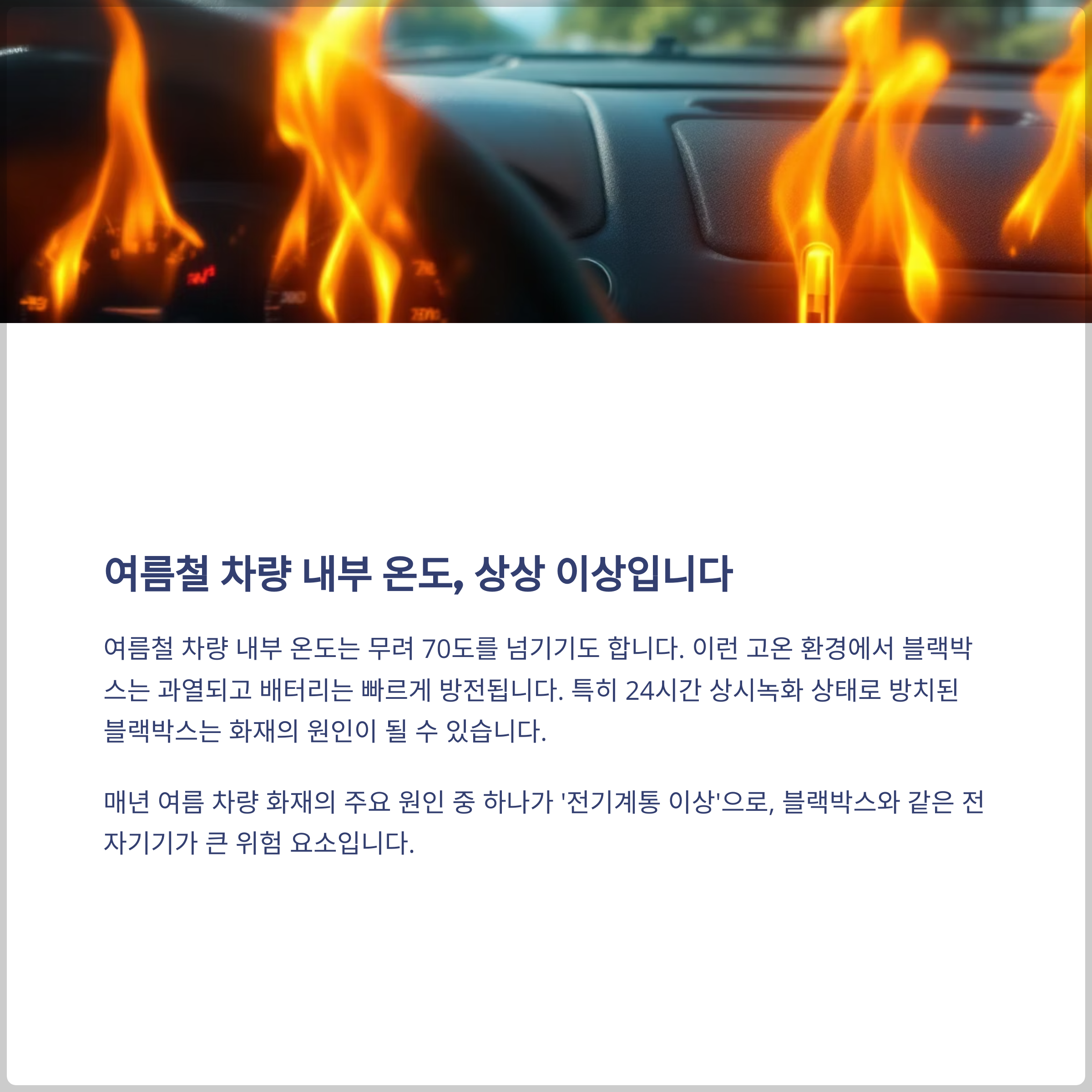 #블랙박스발열 #차량화재예방 #여름차량관리 #차량배터리방전 #블랙박스설정 #여름자동차안전