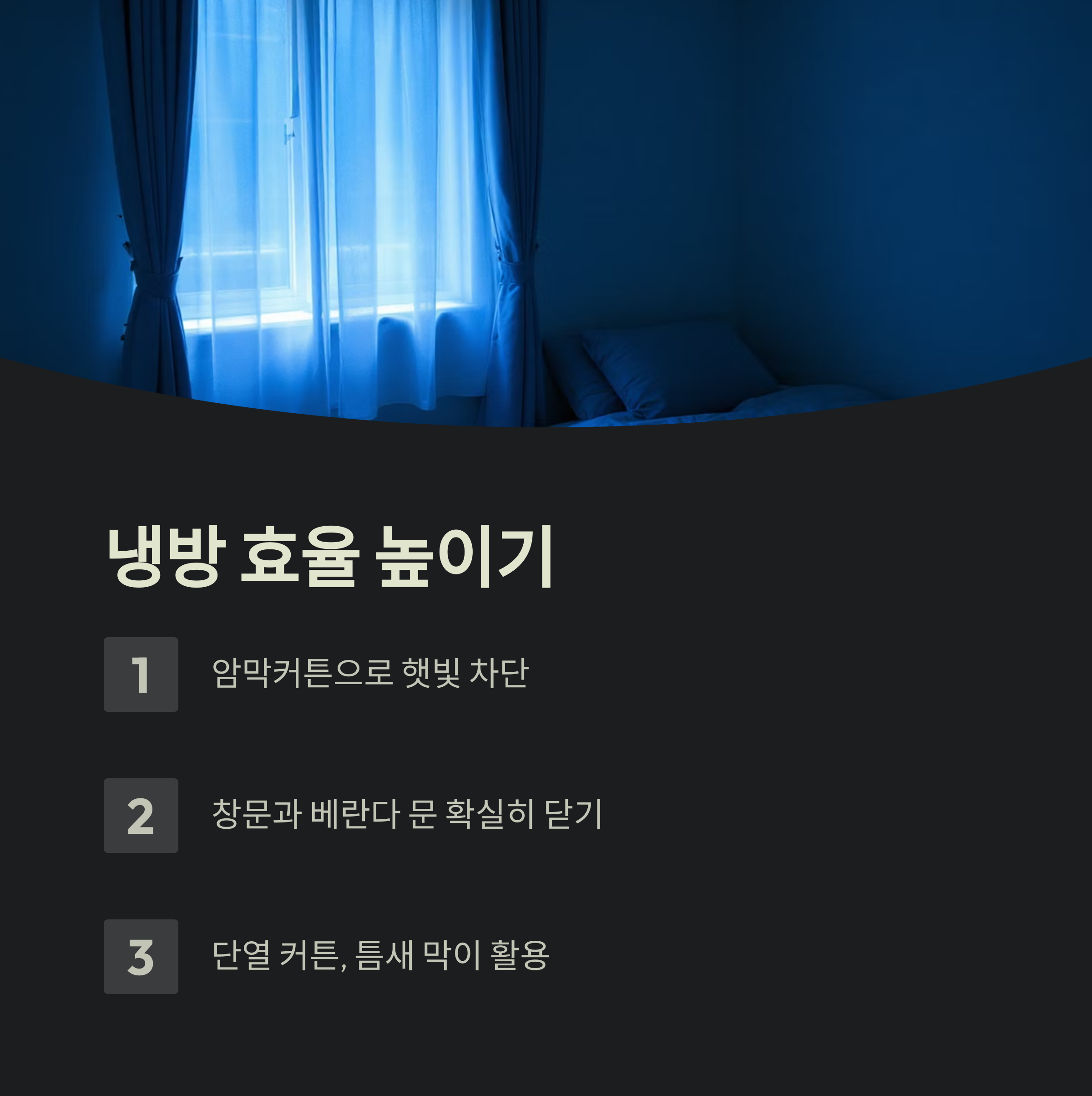 단열 커튼, 틈새 막이 등을 활용해 실내 냉방 환경을 유지하면