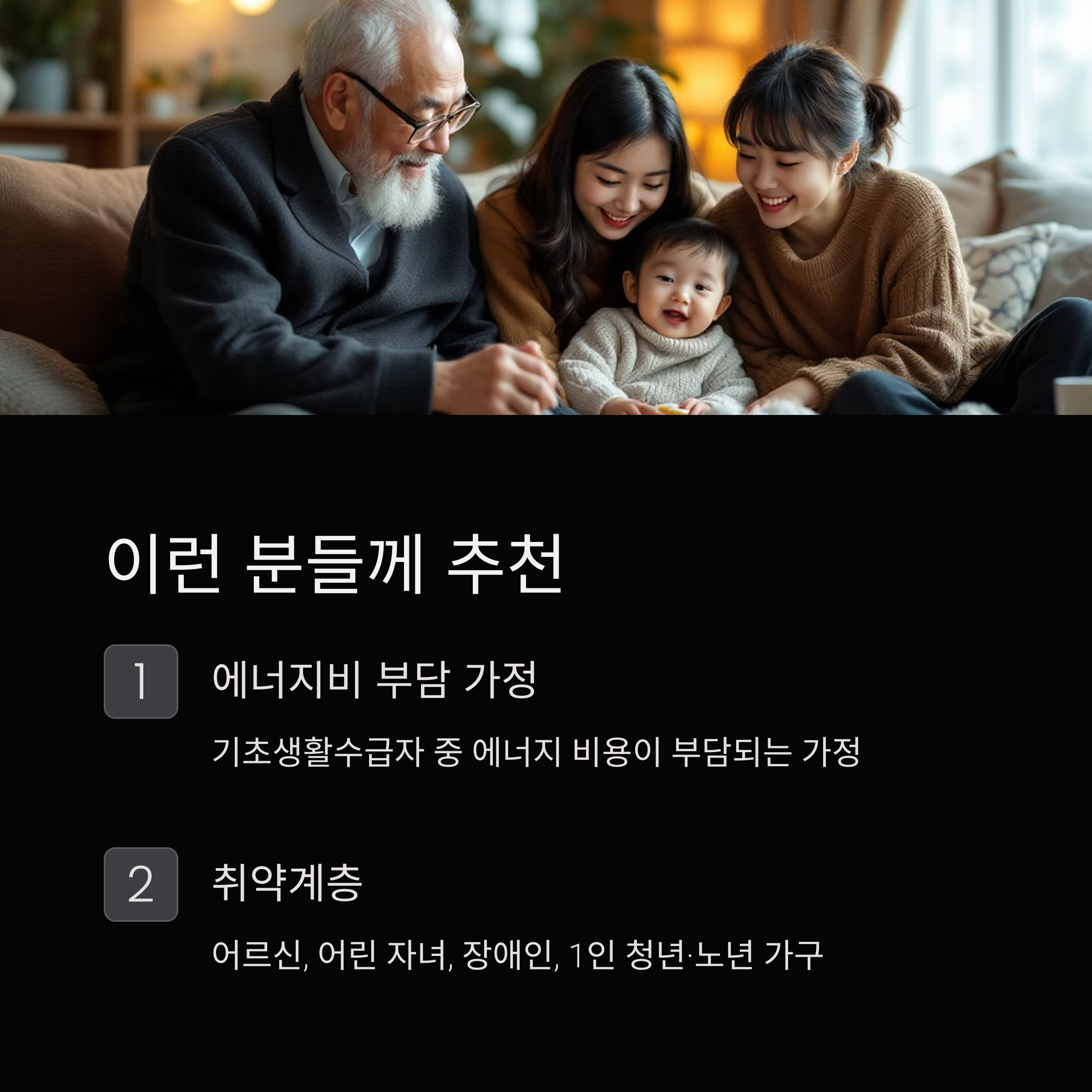 중요한 점은 이 조건을 충족해야만 ‘에너지취약가구’로 인정되어 바우처를 받을 수 있다는 것입니다.