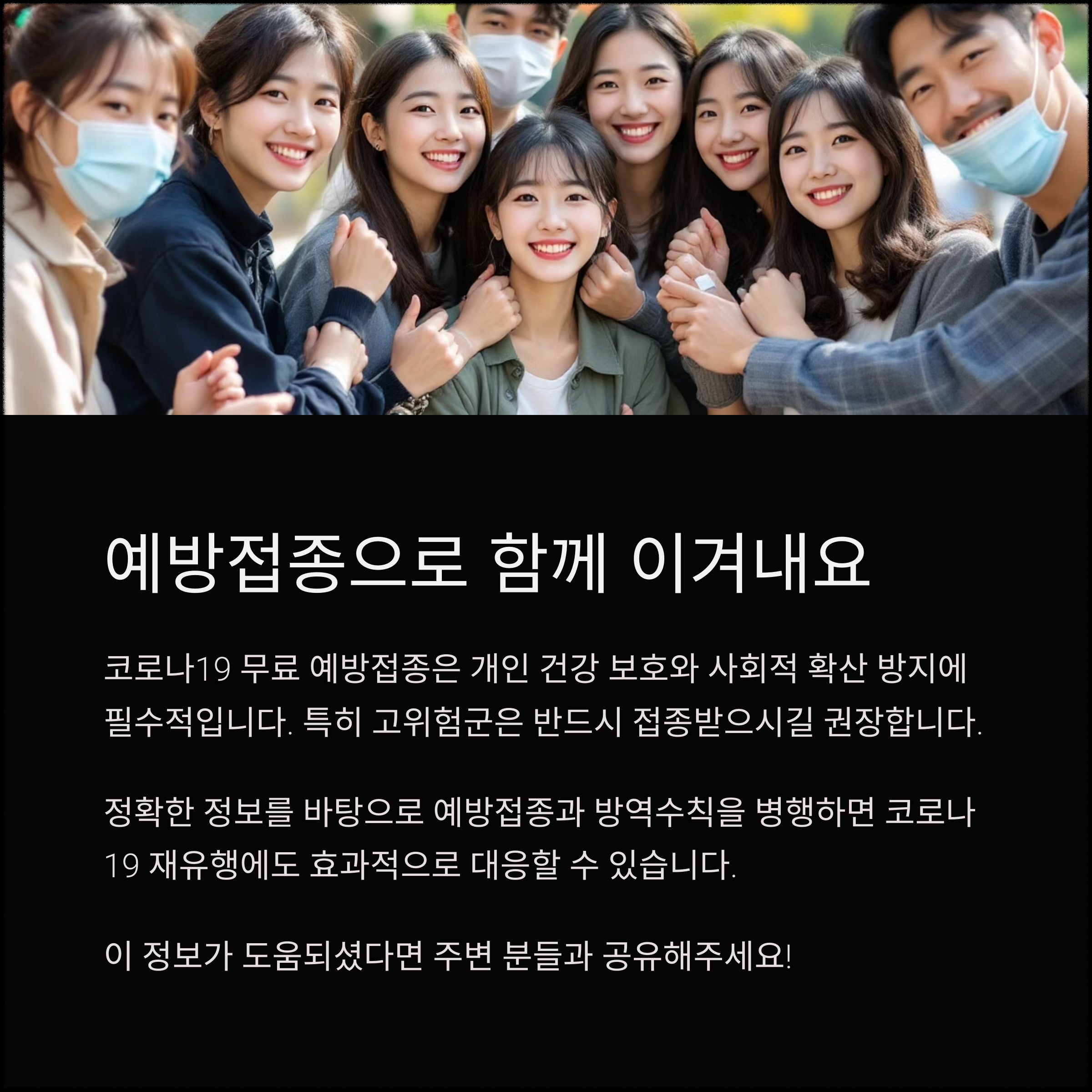 특히 고위험군 보호 효과가 입증된 만큼, 해당 대상자는 반드시 접종받는 것이 중요합니다.