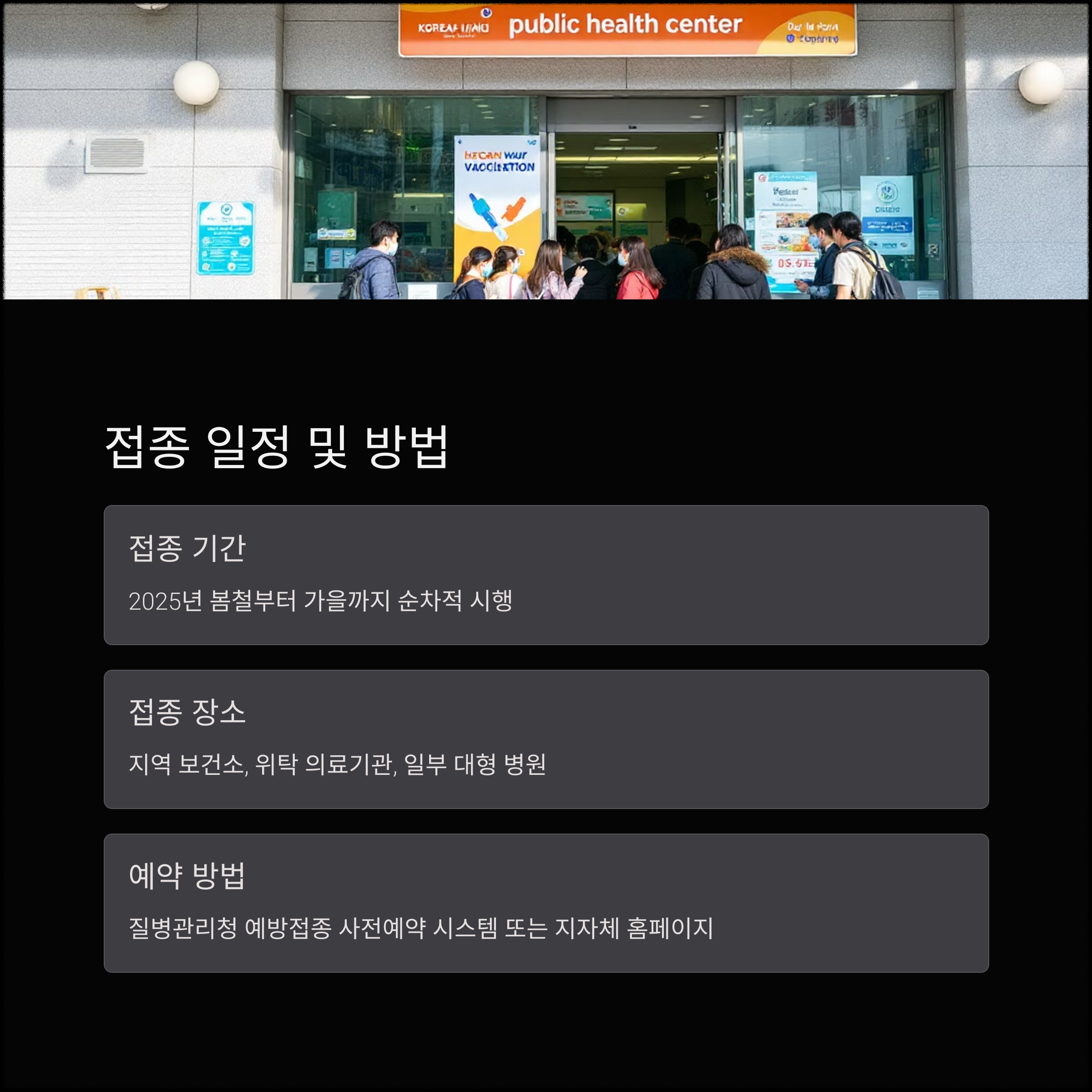 현재는 지역 보건소, 위탁 의료기관, 일부 대형 병원에서 무료 접종이 가능하며, 사전 예약제로 운영되고 있습니다.