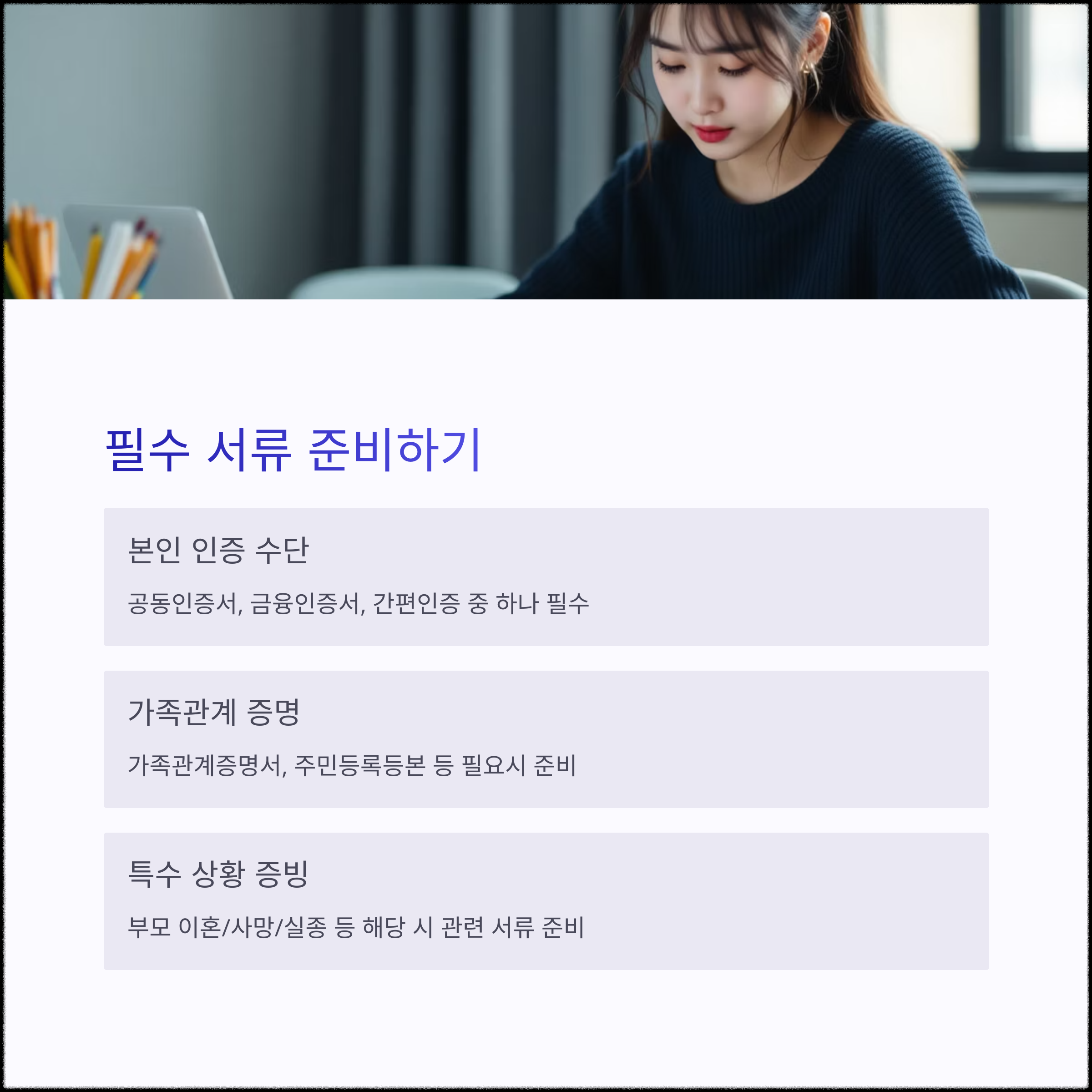 가족 관계를 확인하기 위한 서류도 필요할 수 있습니다. 가족관계증명서나 주민등록등본 같은 서류들이 이에 해당하며, 특히 가구 구성원을 정확히 파악하기 위해 요구됩니다.