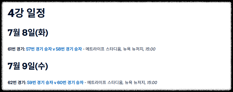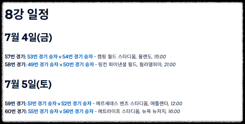 | 8강전 | 7월 6일 ~ 7월 7일 |