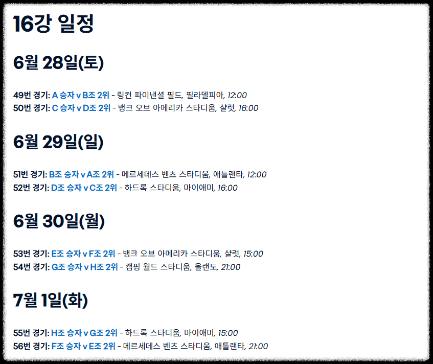 | 16강전 | 7월 2일 ~ 7월 4일 |