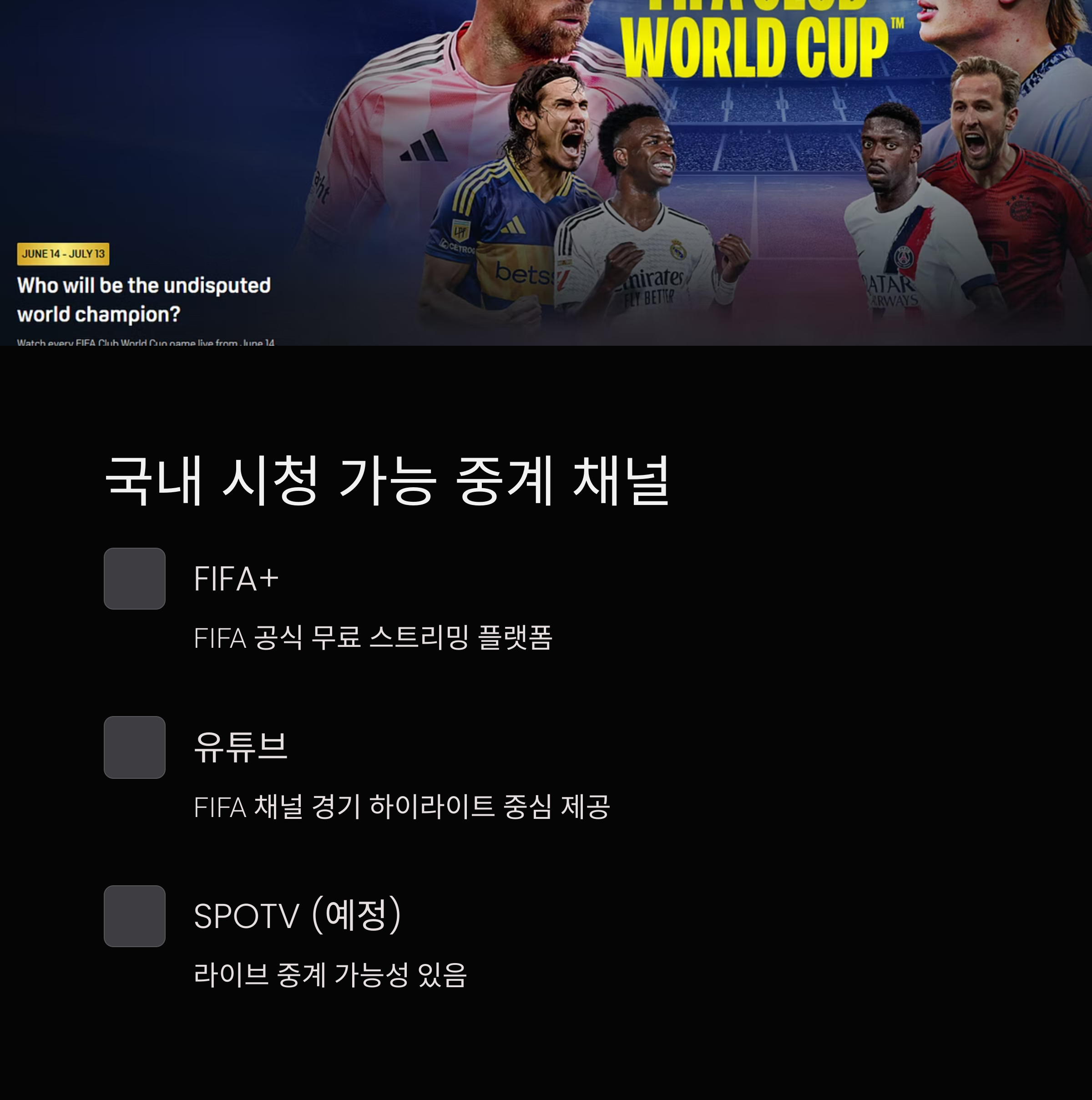 | FIFA+ | FIFA 공식 무료 스트리밍 플랫폼 |